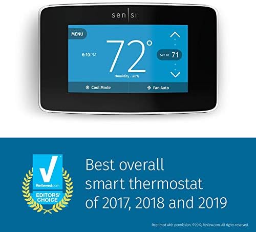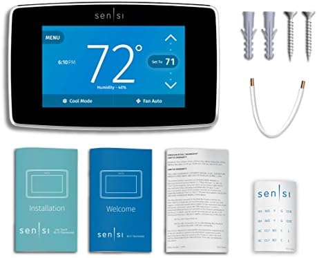 This thermostat also works with Alexa for hands-free voice control, and it requires a C-wire for installation. Upgrade your home’s heating and cooling system with the Sensi Touch Smart Thermostat for a more efficient and connected living space.,