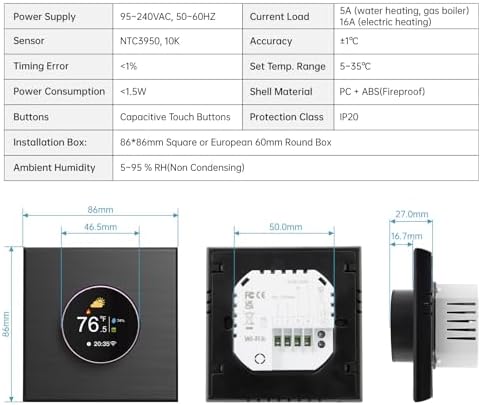 Introducing the Smart Thermostat for Home, the ultimate way to take control of your home’s temperature with ease and convenience. This 7 Day Programmable Thermostat allows you to set different heating and cooling schedules for each day of the week, ensuring maximum comfort and energy efficiency.